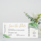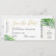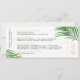 Den tropiska grönten handflatan träd löv (fronder) på ett enkelt, modernt och minimalt utformat boardingkort i flygplan biljett sparar perfekten på datumkortet för ett bröllop på strand eller ett tropiskt ömålbröllop. All text kan vara personlig, text och bakgrund färg. Klicka på ANPASSA YTTERLIGARE om du vill göra detta i den avancerade redigeraren.