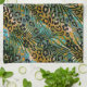 Handflatan lämnar på en leopard bakgrund. kökshandduk