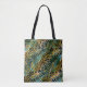 Handflatan lämnar på en leopard bakgrund. tygkasse