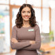 Den här designen har en märkre för anställda med en namn-titel, med botaniska löv i handflatan, en modern professionell, perfekt för kontorsmateriel av företagstyp, en klassisk träd av plastvaror i detaljhandeln, märkre för märkesvaror, detaljhandel, underbar för företag, småföretag, ett enkelt minimum perfekt.