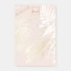 En elegant, en modern tropisk sommartid abstrakt mönster. Bakgrund för Rustic ro guld och vit handflatan träd löv. Dekoreras med faux guld-penseldrag. Lägg till ditt namn och monogram brev.