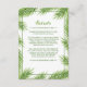 Dessa detaljkort är perfekt för alla par som planerar ett romantiskt destinationsbröllop firande. Utformningen har trendig tropiska grönt handflatan löv på en ren vit bakgrund med en samordnad gräns och ordalydelse. Den enkla utformningen kan vara personlig till kostym för din speciella händelse och kommer att vara perfektens inmatningskort för alla strandteman party, inklusive: möhippor, förlovningar, möhippor, födelsedagsfester och mycket mer.