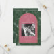 Arch-design med konst- och säsongsillustrationer och bakgrunden till handflatan löv. Systemet för rosa och grönt färg. Anpassa med din egen spara datumfotot.