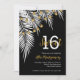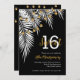 Vita fronder i handflatan träd med guld ljus i svart bakgrund, dessa söta 16 födelsedagsfest inbjudan är roligt för er speciella händelse. MATCHING-objekt i vår samling.