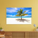 Det här fotot har en handflatan träd-stående ensam på en vit sandstrand.