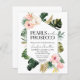 Vi presenterar vår "Pearls and Prosecco" Inbjudningskort för möhippan, som har ett fantastiskt modernt ram med vattenfärgad blommigt inslag, handflatan löv och vibranta hibiscus blommor. Den tropiska gröna designen anger perfektens ton för ett sofistikerat och snyggt firande. Den här inbjudan är utformad med stor noggrannhet, och den kommer säkert att imponera på dina gäster och skapa upprördhet inför det kommande evenemanget. Designad av CaMiDesigns. Kontakta Zazzle Customer Care direkt om du behöver hjälp med beställningar, leverans, produktinformation med mera.