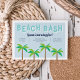 Cute sommar-födelsedagsfest inbjudan för din lilla kille vid insidan av bäckenet har fyra illustrationer av handflatan träd längs grund, med "strandbäcken" överst i reflextexten. Anpassa med information om födelsedagsfesten med hjälp av mallen.