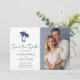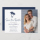 Handflatan Träd Beach Navy Bröllop spara datum - har ditt favoritfoto, tropiska handflatan träd och modern typografi. Du kan enkelt anpassa vår Spara datummall med dina uppgifter.