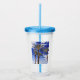 Njut av att kallet dricker med en känsla av tropikernorna med den här handflatan-träd-designtorktumlaren. träd ställs mot ett ljusblått och flytande vitt moln himlar.