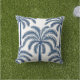 Tropiskt blått och vitt Handflatan-Träd-kusten utanför Dekorativ kudde. Prefekt för ett bostadsområde utomhus, en kustnära helgedom eller ett trädeskvot. Design skapat av Kusten-konstnären Jillee K. Copyright © Total Kusten All Högers Reserved 2023