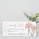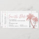 Den vackra rosan faux foil handflatan träd på ett modernt, minimalistiskt boardingkort i ro, sparar det datum som ser ut som ett retro flygplan biljett, guld för en tropisk strand eller ett öresbröllop. Gästerna kärlek som fick dessa roligt bröllop-datummeddelanden som har precis tillräckligt med reseinformation på baksidan så att de kan börja planera sin semester till din plats i bröllop.