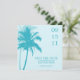 Meddela er förlovning i stil med dessa vackra tillkännagivanden från bröllop spara datum, med en vektorillustration av två träd i handflatan i perfekten för kombinationer mellan trendig och färg för er destination och tropiska sommarbröllop.
