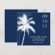 Meddela er förlovning i stil med dessa vackra tillkännagivanden från bröllop spara datum, med en vektorillustration av två träd i handflatan i perfekten för kombinationer mellan trendig och färg för er destination och tropiska sommarbröllop.