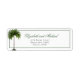 Handflatan Träd elegant personliga returetiketter. En elegant handflatan träd ligger över namn i Bride and Grooms. Elegantens moderna formgivning bröllop. Informationen ändras lätt till din. Det moderna skriptet ändras lätt för egen anpassningsbar.