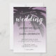 Chicens inbjudan till bröllop med en ritning av det tropiska handflatan träd på en dammig lavender-bakgrund innehåller elegantens handskrivna manusgrafi och modern typografi. Lägg bara till dina uppgifter om bröllop till den här snyggten om inbjudan till tropisk bröllop på strand. Enbart designad för dig av Lycklig Dolphin studio. Vi är lycklig för att hjälpa dig att göra bröllop till den vackraste dagen!