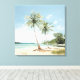 Handflatan Träd vid havet i Kanvastrycket Watercolor Painting (vattenfärgsfärgning) i vackra kustblått och grönt. Denna kustbevakning av träd är ett fantastiskt biet av snyggtens perfekt av tropisk vägg i kustområden för alla kusthem, strandstugor och havsbottnar. Copyright © Total Kusten All Högers Reserved 2023