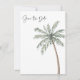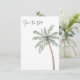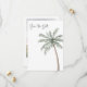 Inbjudan dina kära till din speciella dag med den här tropiska Beach-bröllopet i Handflatan Träd Spara datumet. Med en enkel vattenfärg handflatan träd på framsidan och i utrymmet för ditt favoritfoto och bröllop på baksidan, fångar den här designen lugnen, naturskönheten hos en sida av firande. Perfekt för tropiskt bröllop, kustceremonier eller destination "Jag gör det", detta kort blandar elegantens minimalism med avslappnade öviber. Anpassa det enkelt med information om bröllop, plats och anpassningsbar. Oavsett om du planerar ett intimt hav eller ett fullt-tropiskt helg, anger detta datum tonen för kärlek, anslutning och salt luft.