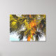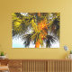 På ett tropiskt humör visar det ursprungliga fotografiet av MaeFlowers på denna Wrapped Canvas Print överst på handflatan träd med grenar och skräp som badas i det varma glöden på eftermiddagen sol. Det långa, spetsade grenar i bakgrunden är mörk grönt och sprider sig som fläkt. Grenar i förgrunden är en lätt gult grönt som krymper utåt när de fångar solljus. Träd, vanligtvis ett medelbrunt färg, ser nästan orange ut i det sena eftermiddagsljus. En blek akvatisk bakgrund i blå himmel avfyrar rikens jordtoner i handflatan träd och fullbordar den tropiska scenen.