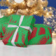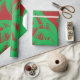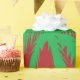 Silhouette i Grönt träd ger en röd bakgrund för en roligt av den tropiska julklappen i stil.