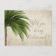 Ett tropiskt vykort Handflatan Träd "Kommer du att bli min Bridesmaid?". En inbjudan med ett Handflatan Träd. En del av en serie bröllopsinbjudningar från Just Bra Design.