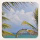 Handflatan lämnar på en skonsam tropisk brygga. Perfekt underlägg för en tropiskt tematisk händelse.