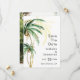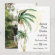 Det här bröllopsfotot för destinationen handflatan träd sparar datumdesignen med tropisk vattenfärg handflatan träd på en ljusvit bakgrund som framkallar den drömambitionen med ett destinationsbröllop. Den här designen utstrålar romantik från sandstränder och svävar handflatan, perfekt för par som söker en verkligt oförglömlig firande. Om du vill ha samordning av personligen eller frågor, tveka inte att nå ut.