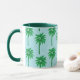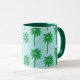 Mönster har en ljusblå bakgrund i grönten handflatan träd mönster på ljusblå botten.