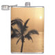 Silhouettes of handflatan träd mot en solnedgång i himlar.