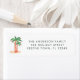 Den här festa returadressetiketten har vattenfärgen handflatan träd som dekorerats med färglöst sträng ljus. Enkelt anpassade. Ursprunglig vattenfärg © Michele Davies.