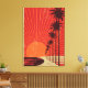 vintage+vykort kalifornia handflatan+träd solnedgången sol tropisk strandhav