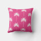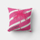 Handflatan Träd Shock rosa Rand Dekorativ kudde. En smart modern design med ditt eget namn. Namn kan tas bort om du inte vill ha det. Shock rosa med vitt rand och omvänt shock rosa med mönstrat vitt handflatan träd. Modern och chicens sommarkudde.