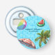 Håll ett oförglömligt bassäng party med denna azure - ljusblå patoplattor som omfattar handflatan träd, en strand boll, paraply i sol och färsk melon.