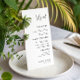 Elegant bröllop-menyn med anpassningsbar, modernt manus och handflatan träd skulle göra ett underbart tillägg till party! Ändra texten enkelt genom att klicka på alternativet "Anpassa den här mallen".
