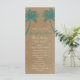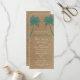 Handflatan Träd Distress Vintage Teal Blue Turquise Beach-Lodrät Bröllopsprogram med två handflatan-träd längst upp. Bakgrunden är ett hårt, rustiskt brunt pappert utseende. Det här är perfekter för bröllopsprogram på stranden eller för målbröllopsprogram. Det här är ett bröllopsprogram på två sidor med lodrät 4 x 9. Använda bara fält för att lägga till din egen ceremoniinformation för bröllop eller använda knappen Anpassa den om du vill lägga till eller ta bort linjer av text eller flytta sak runt. teala bröllopsprogram, tuoffrisprogram, akvblått bröllopsprogram, bröllopsprogram billigt, billiga bröllopsprogram, bröllopsprogram lodräna, två sidade bröllopsprogram, strandbröllop, målbröllopsprogram, bröllopsprogram bröllopsprogram, tropiska handflatorna, Rustik, träd.