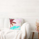 Utformning av Handflatan träd på en tropisk ö med akvamarin blå himmel och flytande vita moln. Helgdag Sommarbesök för en kyld avslappnad känsla.