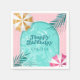 Kasta en födelsedagsfest vid bassäng med dessa moderna "handflatan vår" inspirerade napkins från bassäng party. Den har en rosa patientpanel och en bågformad simmande bassäng med realistiska inbjudningar till vatten, handflatan löv och paraplyer.