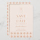 Handflatan Vår är ett ställe som är känt för sitt vackra väder och sina fantastiska landskap. Om du tittar att ha en bröllop i Handflatan i Vår, då är inbjudan till bröllop spara datum i handflatan vår en perfekt för dig! Den har en känsla av vintage med en modern tvist, och det är perfekt för alla bröllop-teman. Dessutom kommer elegantens utformning att få dina gäster att känna sig speciella. Varför vänta? Beställ din inbjudan till handflatan vår-retro idag!
