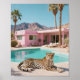 Ta med djärva, sol-indränkta viber till ditt hem med den här slående konsttryckningen med en stor leopard-loungingsida på ett drömt återtro till rosa Handflatan Vår hem. Med handflatan träd, bergskorpor och stänk av glam från vintage fångas perfekten av vild och chic i biet.