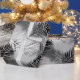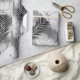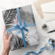 Slå in papper i ett tryck av överlappande handflatanlövsilhouettes, skuggar in av grått/grå färg, svartvitt, mot medelgrå färg/en grå bakgrund