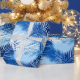 Handflatanlövtryck, kobolt, vit och himmelblått presentpapper