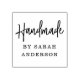 Rubber frimärke med texten "Handmade" i ett modernt handskrivet stil-skript och ditt namn eller annan anpassningsbar text nedan.