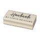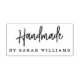 Rubber frimärke med texten "Handmade" i ett modernt handskrivet stil-skript och ditt namn nedan.