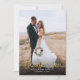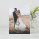 Elegant och enkel tacksamhet smallkort för bröllop med handgjord typografi skript text med ett hjärta mellan orden. Lägg till ditt favoritfoto i full bleed på framsidan och ett annat foto på baksidan med standardmeddelande på baksidan som är redigerbart.