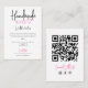 Den här söta och hemliga designen är perfekt för ditt hemmabruk. Det innehåller sloganen "Handmade made with kärlek", ett sött handdraget hjärta, ett tackmeddelande och kontaktinformation med en QR-kod på baksidan så att dina kunder kan söka efter webbplatsen. Den omfattar handskriven typografi och ett enkelt svart-, nyare rosa- och vitt färg-system. ***VIKTIG DESIGN-ANMÄRKNING: För varje begäran från anpassad design, t.ex. matchningsprodukter, färg-ändringar, placeringsändringar eller varje annan ändringsbegäran, meddela designern. Du kan till och med skicka in en begäran om en helt ny anpassningsbar och design.