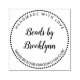 Handgjord med kärlek gummi frimärke tillsammans med ditt företag namn i ett kalligrafiskt skript för söt som är ramat av en prickad cirkel och skrivet i en båge "handgjord med kärlek" och på din webbplats.