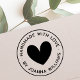 Rubber frimärke med texten "Handmade with kärlek" och ditt namn eller annan anpassningsbar i ett modernt sans serif-teckensnitt omgivet av ett runt gräns. I mitten finns ett sött hjärta.