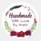 Denna klistermärke är en etikett för handgjorda objekt! Endera klibba den som är rak på objektet eller, skapa din egna rundamärkre med denna som klibbas på bekläda för att ge det en elegant look. Byt enkelt det existerande namn för ditt eget. Designen presenterar ro, löv och fjädrar för vattenfärg blom-.
