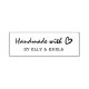 Handmade Business Frimärke. Handgjord med självtryckande gummi frimärke i kärlek med texten "Handmade with" i ett modernt typsnitt, ett calligraphy-hjärta inslag och ditt företag namn i ett skrivmaskinsteckensnitt. Anpassa den med dina detaljer och lägg till en speciell beröring i dina handgjorda produkter eller presenter. Utforska mer lättanpassat unikt gummifrimärke för företag och privat använda som har tillverkats med kärlek av © y.BEE PAPERIE #zazzlemade #handmadehydrovestamp #handtecknheartstämpel