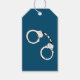 Handklovar på blå presentetikett