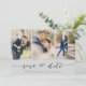Plocka det bästa bilderna från förlovningen eller bilderna av de två för den här perfekten sparar datumet. Ord sparar datumet och skriver till ge för hand ett personligt märke till kortet. Framsidan har 3 bilder och baksidan har en stor bild med ett vitt filter överst. Redigera det här alternativet om du vill spara bröllop-kortet med din information och anpassa det för teckensnitt och teckensnittsalternativ för färg.